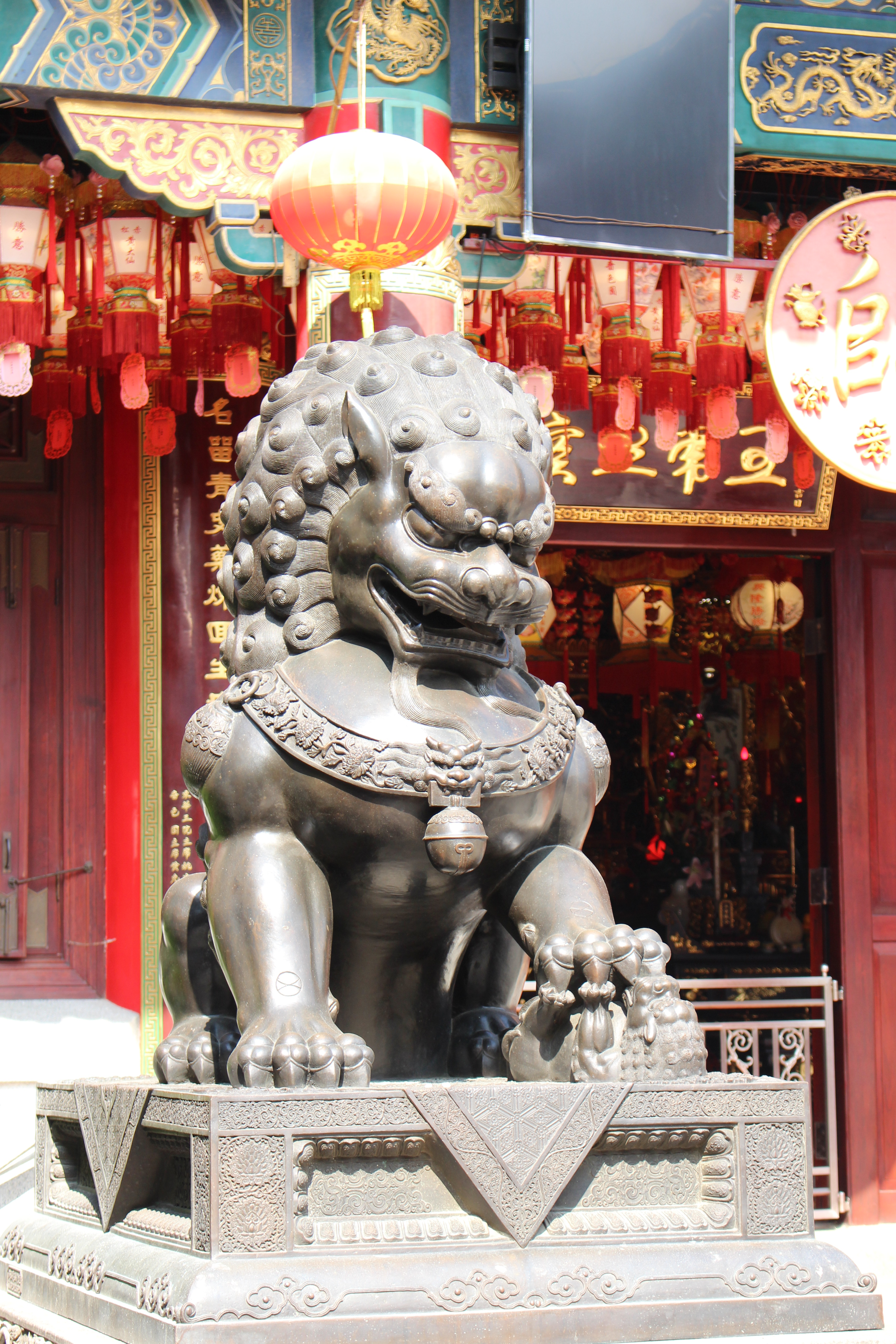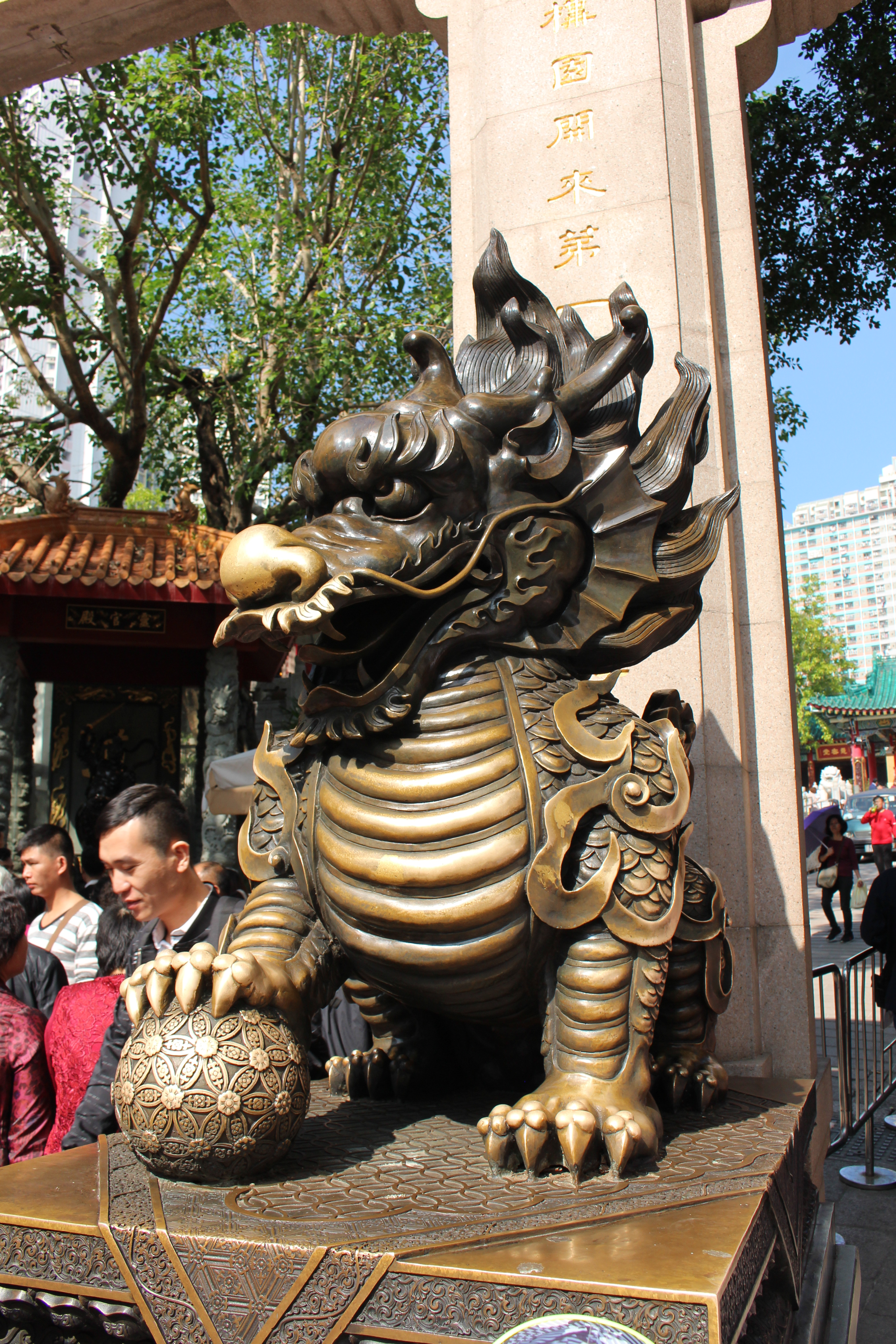 Deux dragons gardent l’entrée du temple. On dit que si vous faites un vœu en les touchant en entrant et en sortant du temple, il se réalisera.