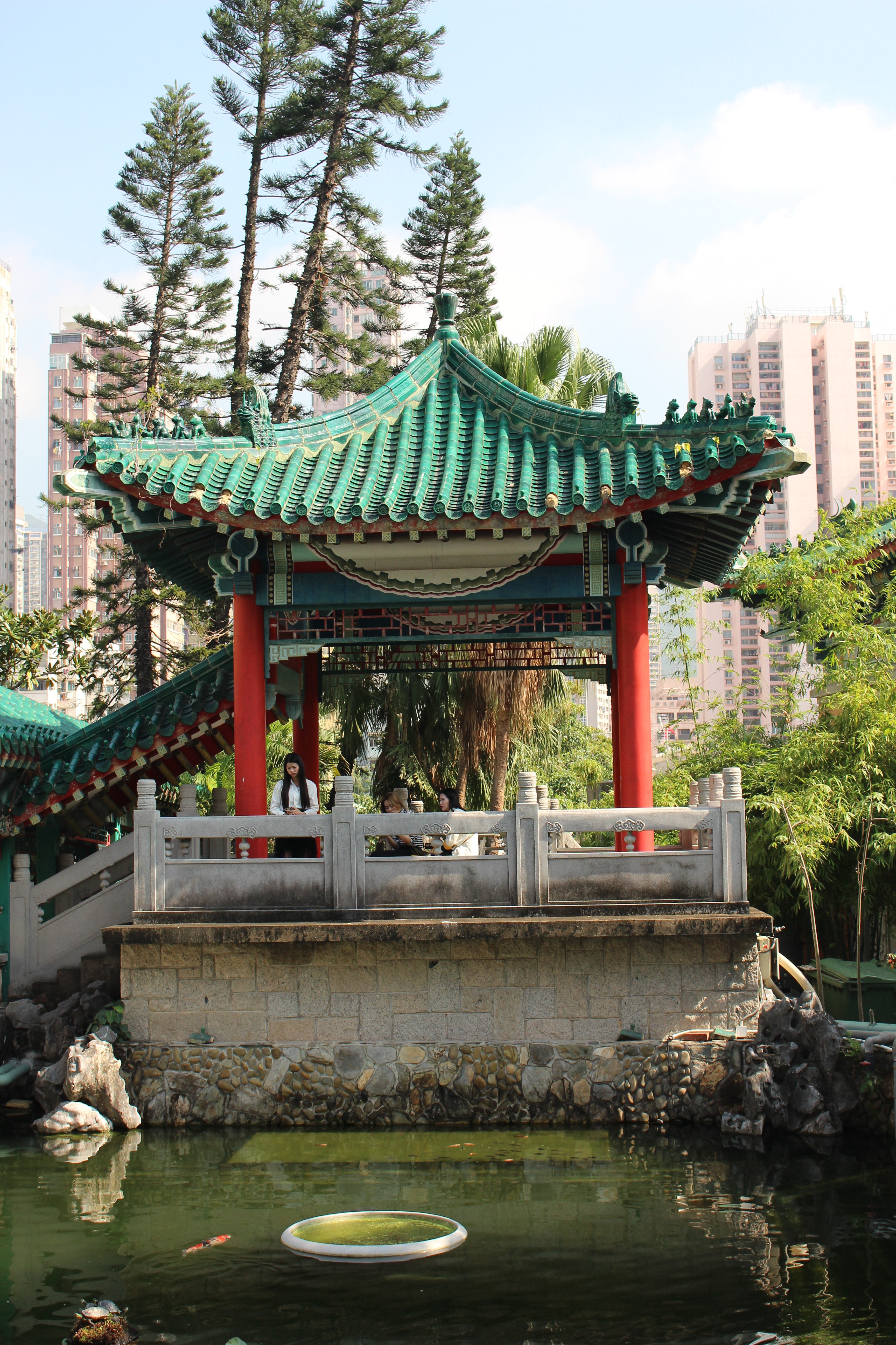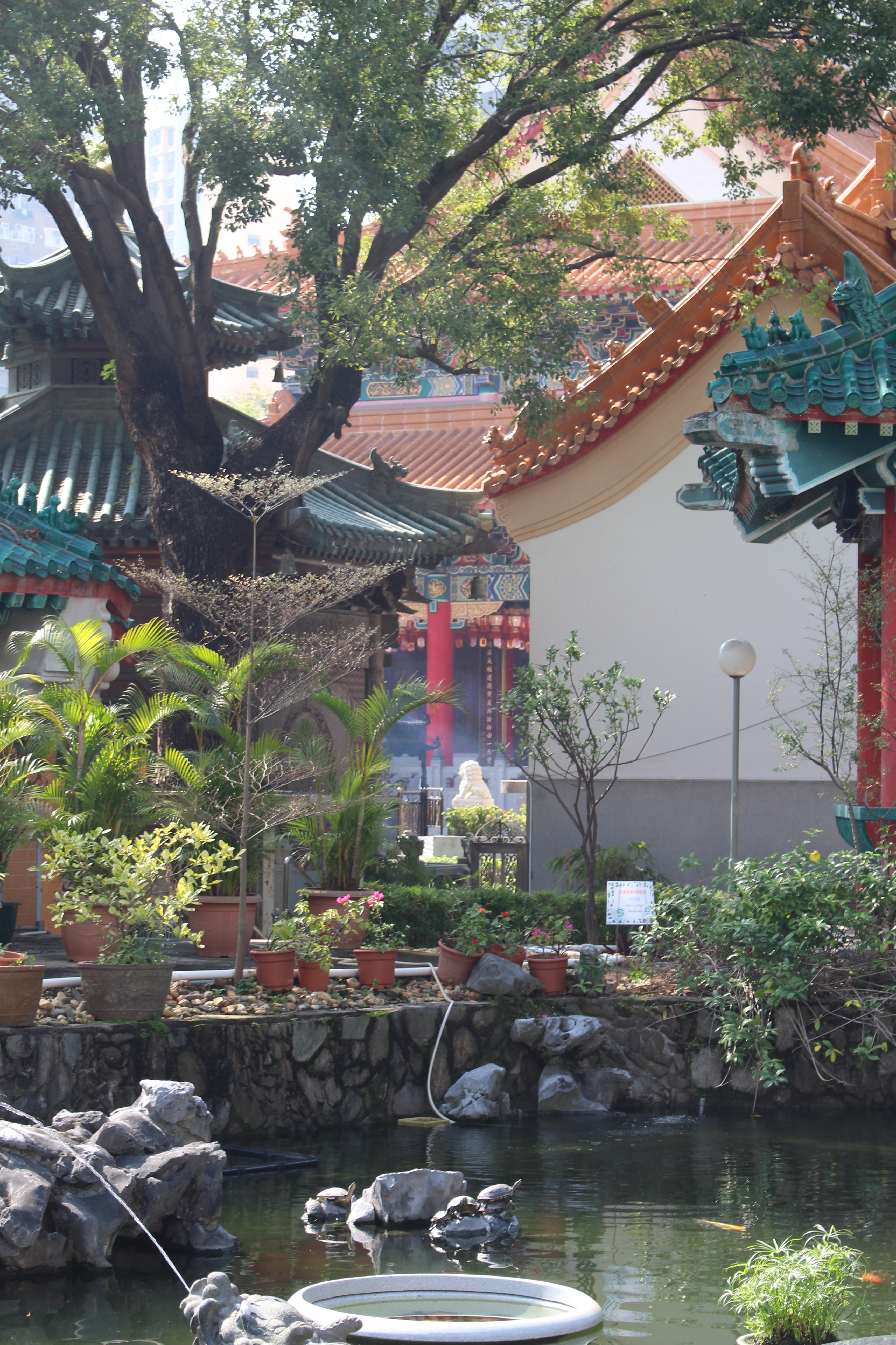 Le 26, le temps était incroyable. Il faisait beau et chaud comme une journée d’été. Nous sommes allés visiter le temple de Sik Sik Yuen Wong Tai Sin à Kowloon et le jardin de Good Wish qui se trouve derrière le temple. Le temple est au cœur de la ville juste à côté d’une station de métro. Le temple est assez grand et a plusieurs bâtiments.