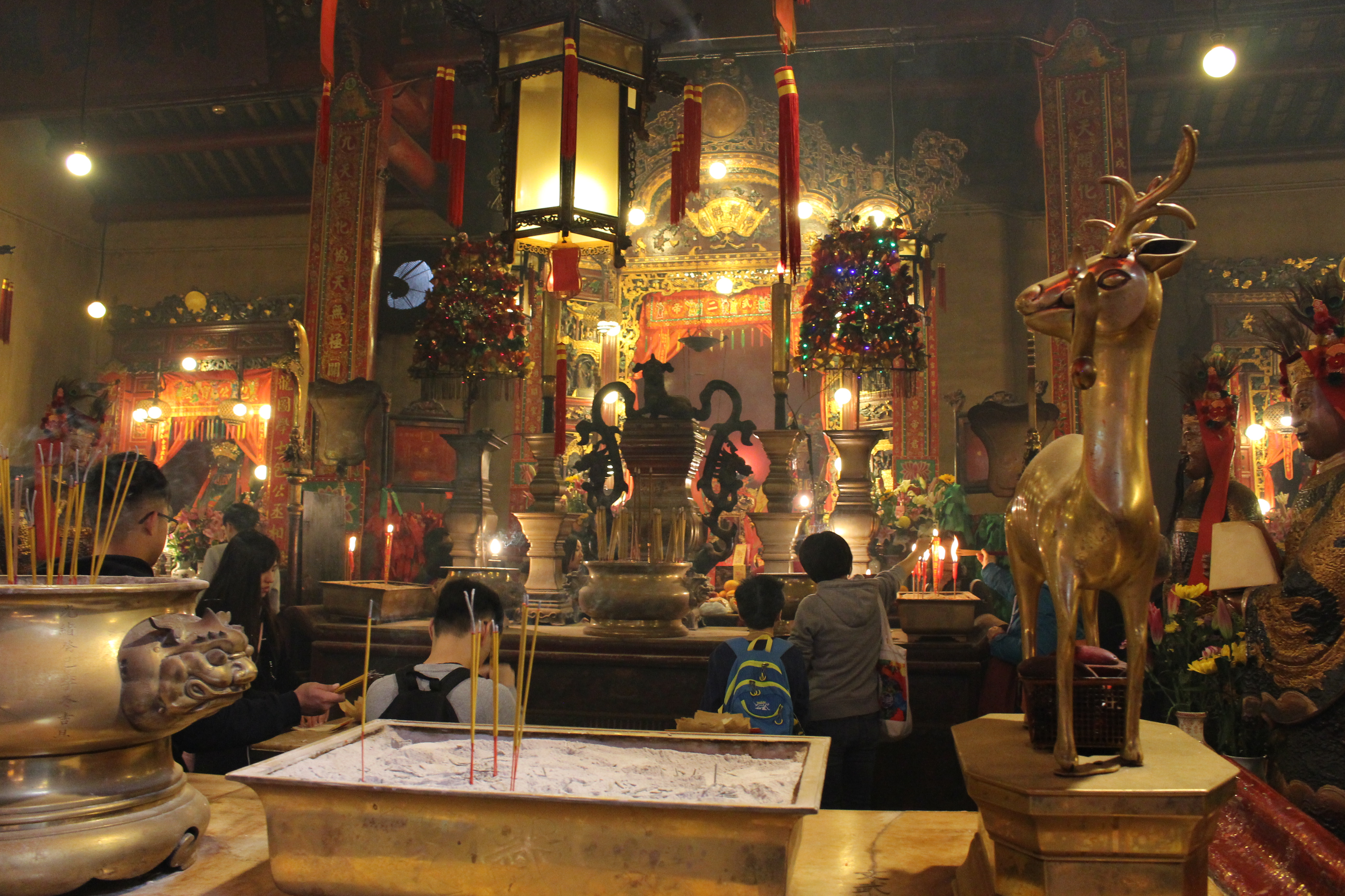 Françoise a lu un article intéressant sur le street art à Hong Kong, alors Emilie, Gilbert, Françoise et moi sommes allés à la découverte du côté de Sheung Wan. Nous nous sommes d’abord arrêtés au temple Man Mo.