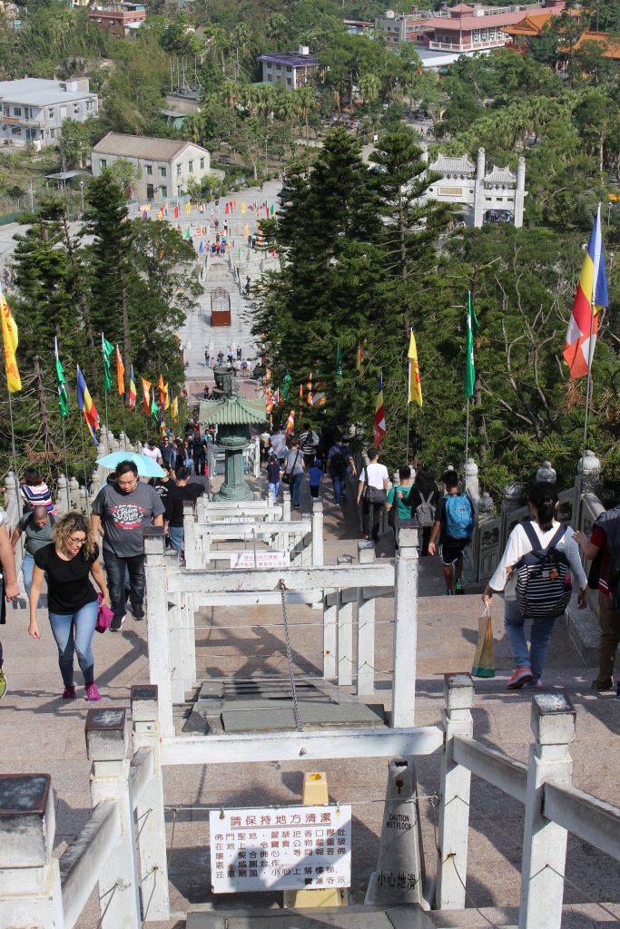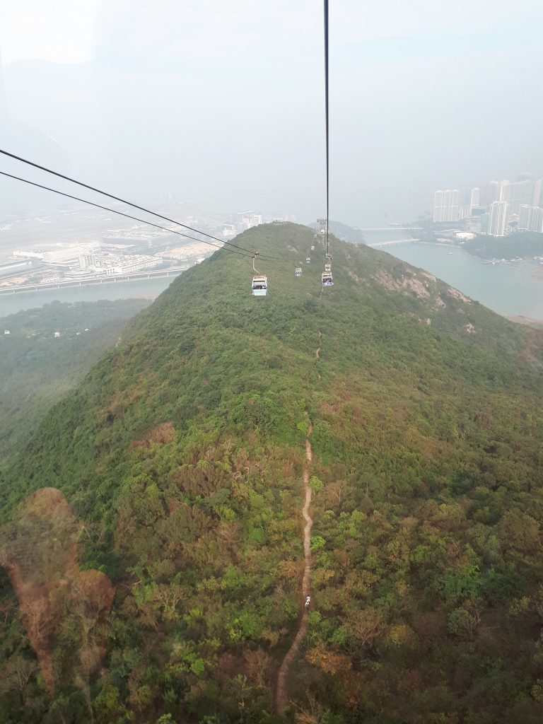 Nouvelle aventure : Le temps était superbe, alors nous sommes allés voir le Big Buddha sur l’île de Lantau. Pour y arriver, nous avons pris le bus pour Ocean Park, le métro pour Tung Chung via Central et enfin le téléphérique. Au total, cela nous a pris entre 1 heure et demie et 2 heures porte à porte. Mais ça en valait la peine ! Le Bouddha a une hauteur de 34 m et est perché au sommet d’une colline. Le site est très touristique mais il n’y avait pas trop de monde. Nous avons déjeuné au monastère de Po Lin dans un restaurant végétarien. Le repas était intéressant mais pas vraiment délicieux … Ça fait partie de la découverte ! Après avoir pris beaucoup de photos, nous sommes rentrés chez nous par le même chemin.