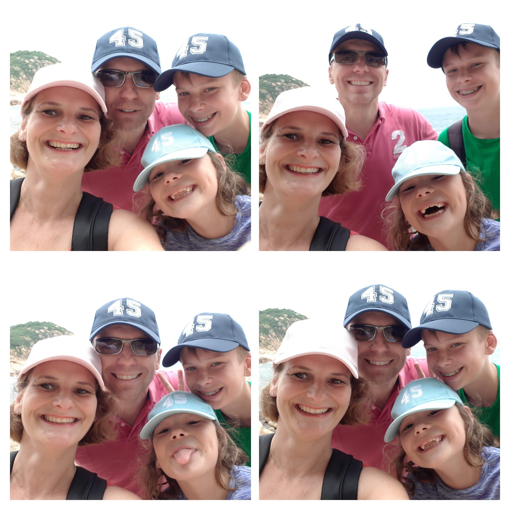 Après cela, nous sommes allés à la plage. Sébastien a eu la bonne idée de louer un parapluie. Le soleil était très chaud car nous sommes arrivés à 13h. Les enfants ont passé un bon moment dans la mer. Les vagues étaient super ! Nous avons même acheté une grosse bouée.