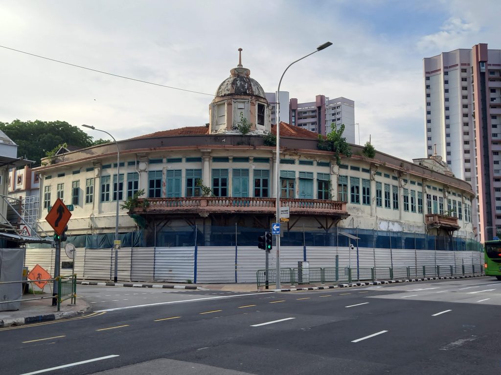 A few days later, I went to the dentist (19th floor in Novena) and decided to walk around Kampong Glam to explore a few sites from Secret Singapore. First was Petain Street. Singapore is one of the only place that still have a street named after Maréchal Petain. He was, after all, a hero of First World War, even if he’s mainly remembered today for his actions during Second World War. I then went to see the “Leaning Tower of Singapore”, aka Masjid Hajjah Fatimah Mosque, one of the rare mosques named after a woman. On my way I spotted the beautiful blue Masjid Malabar Mosque. On my way back home, I saw a couple of interesting condo buildings and also a very old Muslim cemetery. I also spotted a very odd/funny tower full of cars and, a rare sight, a decaying building that must have been beautiful in its hay days, the Ellison Building.